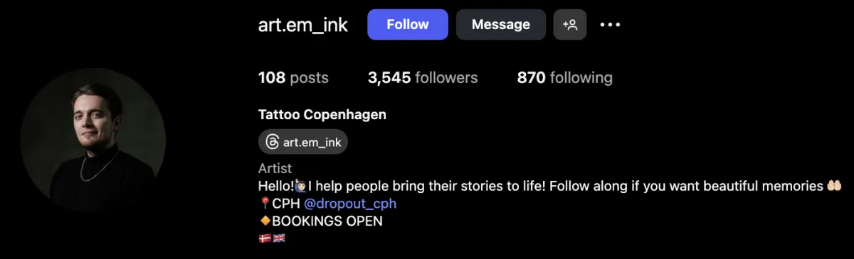 Jeg har speciale i farve tatoveringer, og black and grey realisme, og har tatoveret siden 2018 med erfaring indenfor en bred vifte af stilarter.
